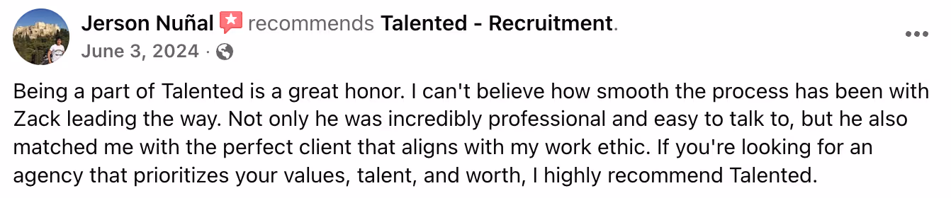 "surpassed my expectations-beating out a much larger recruiting agency"