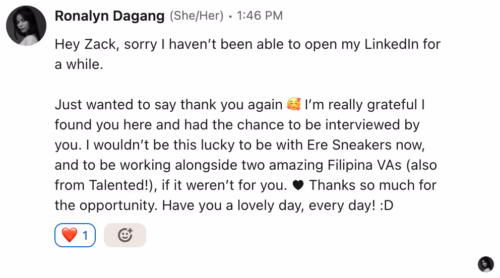"I will be recommending you in a heartbeat"